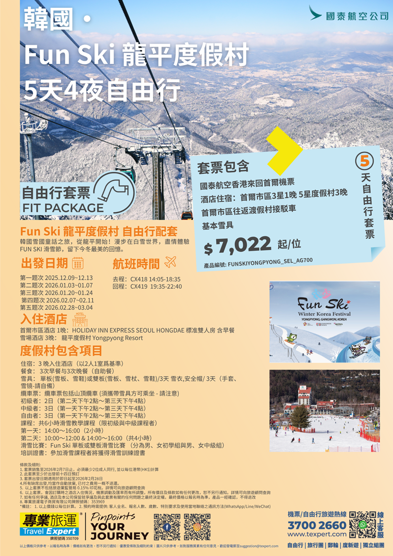 韓國雪國童話之旅,從龍平開始!漫步在白雪世界,盡情體驗 FUN SKI 滑雪節,留下今冬最美的回憶。