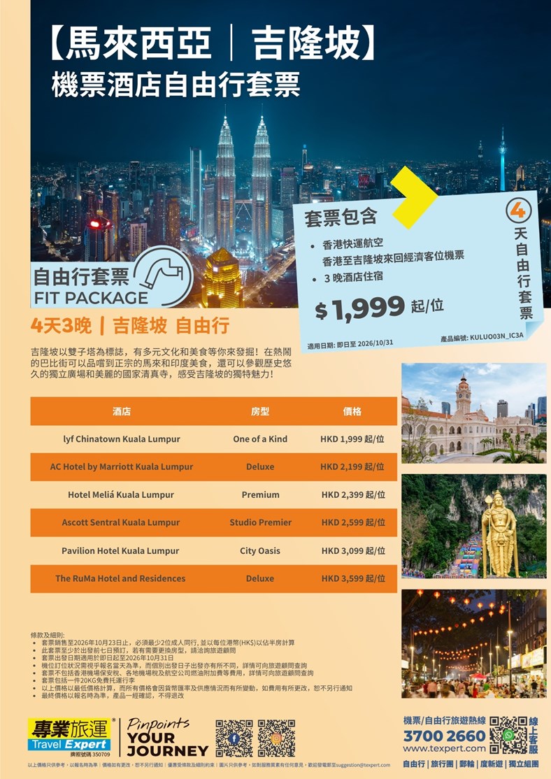 【馬來西亞|吉隆坡】機票酒店自由行套票