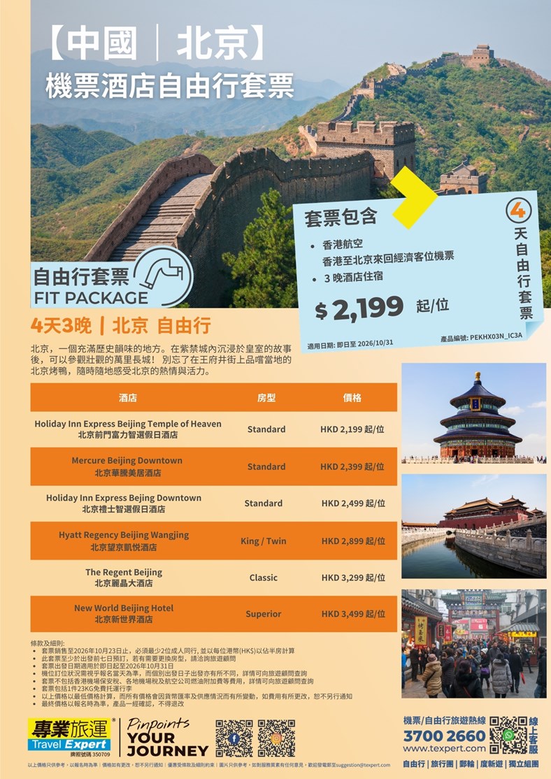 【中國|北京】機票酒店自由行套票