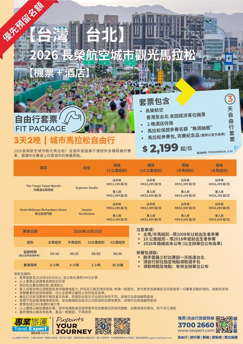 【台灣|台北】2026 長榮航空城市觀光馬拉松 套票 | 專業旅運 Travel Expert
