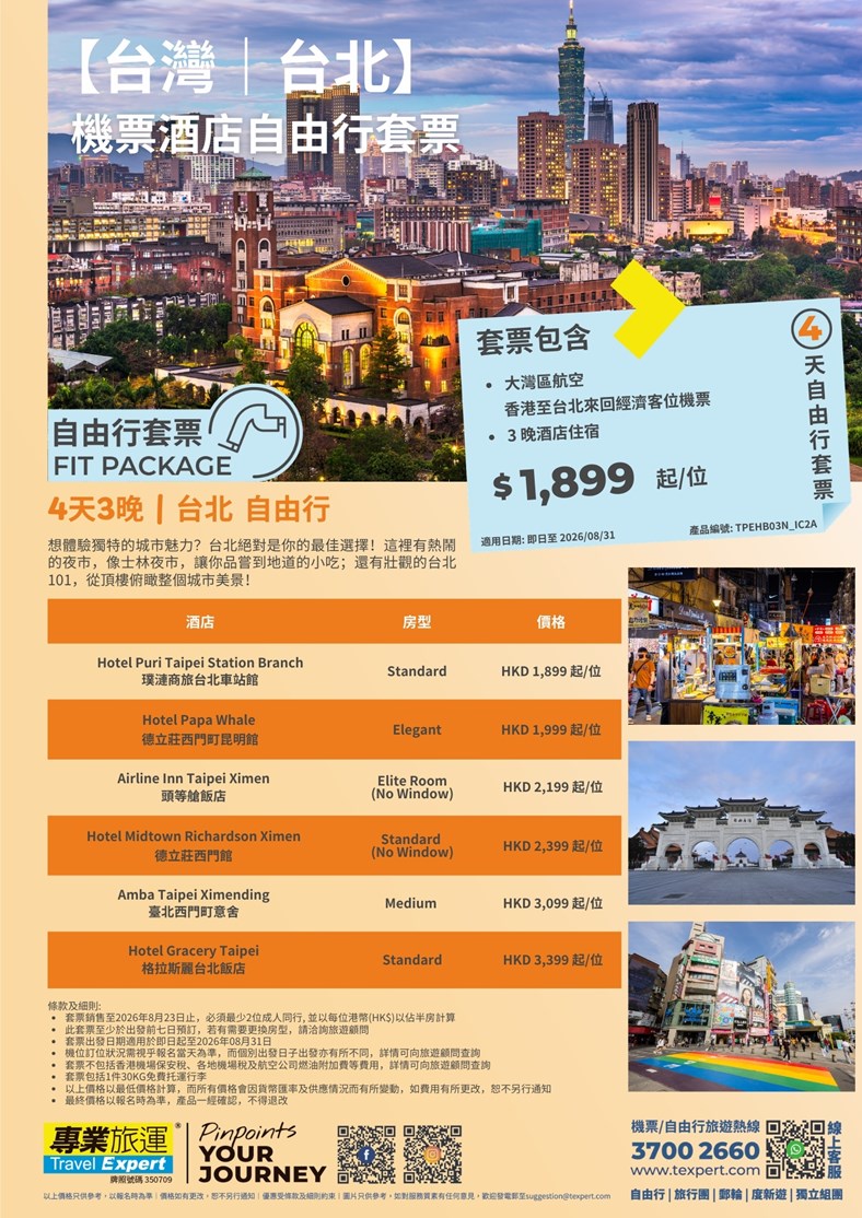 【台灣|台北】機票酒店自由行套票 | 專業旅運 Travel Expert