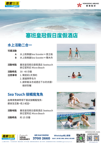 - 以上價格已包 0.15% 旅遊業賠償基金。