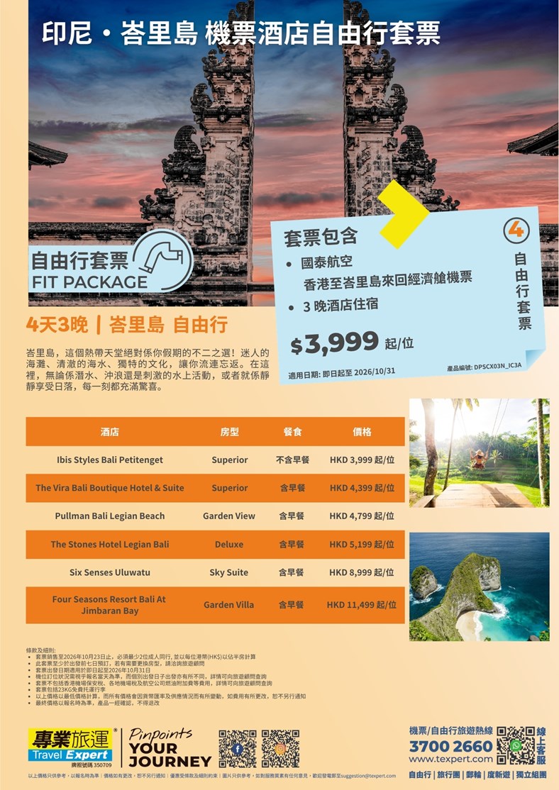 - 套票出發日期適用於即日起至2026年10月31日