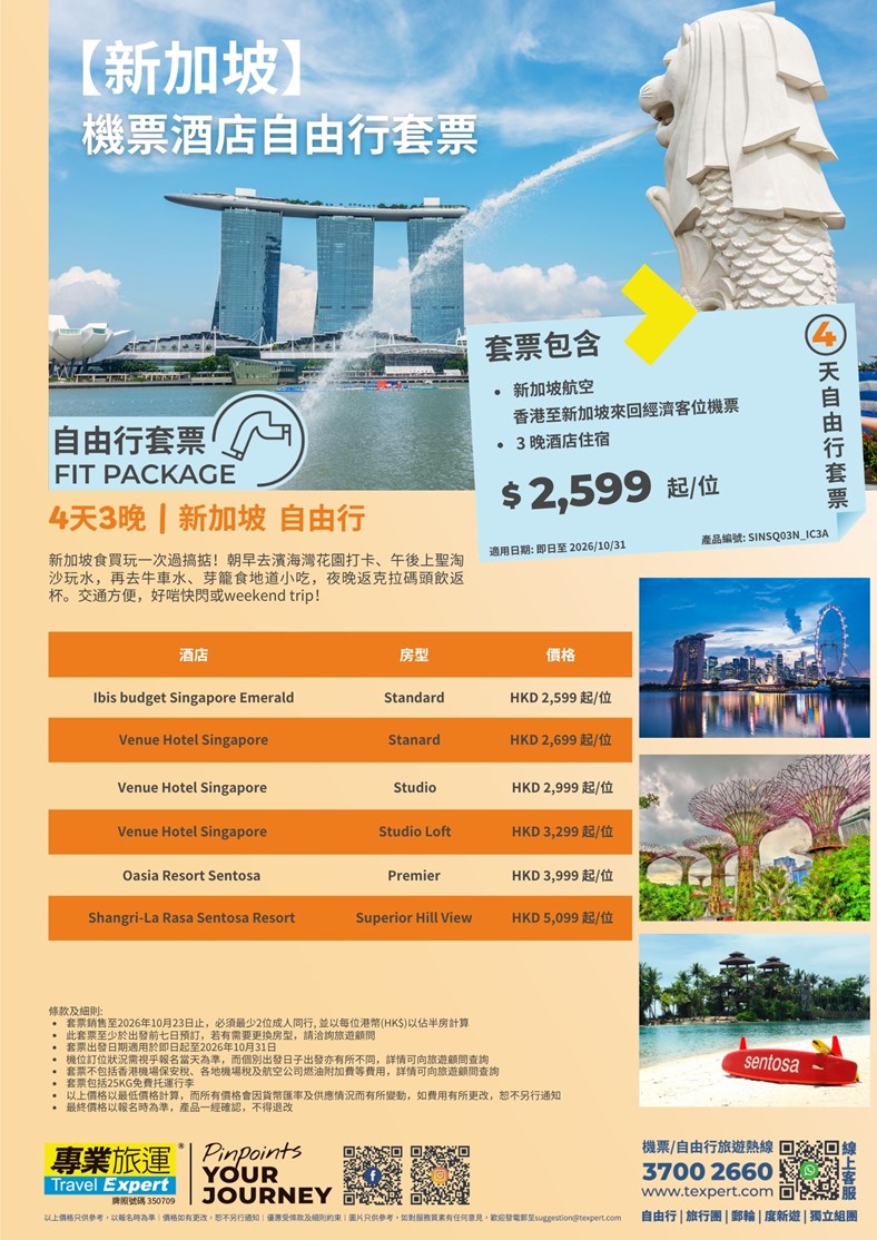 【新加坡】機票酒店自由行套票 | 專業旅運 Travel Expert