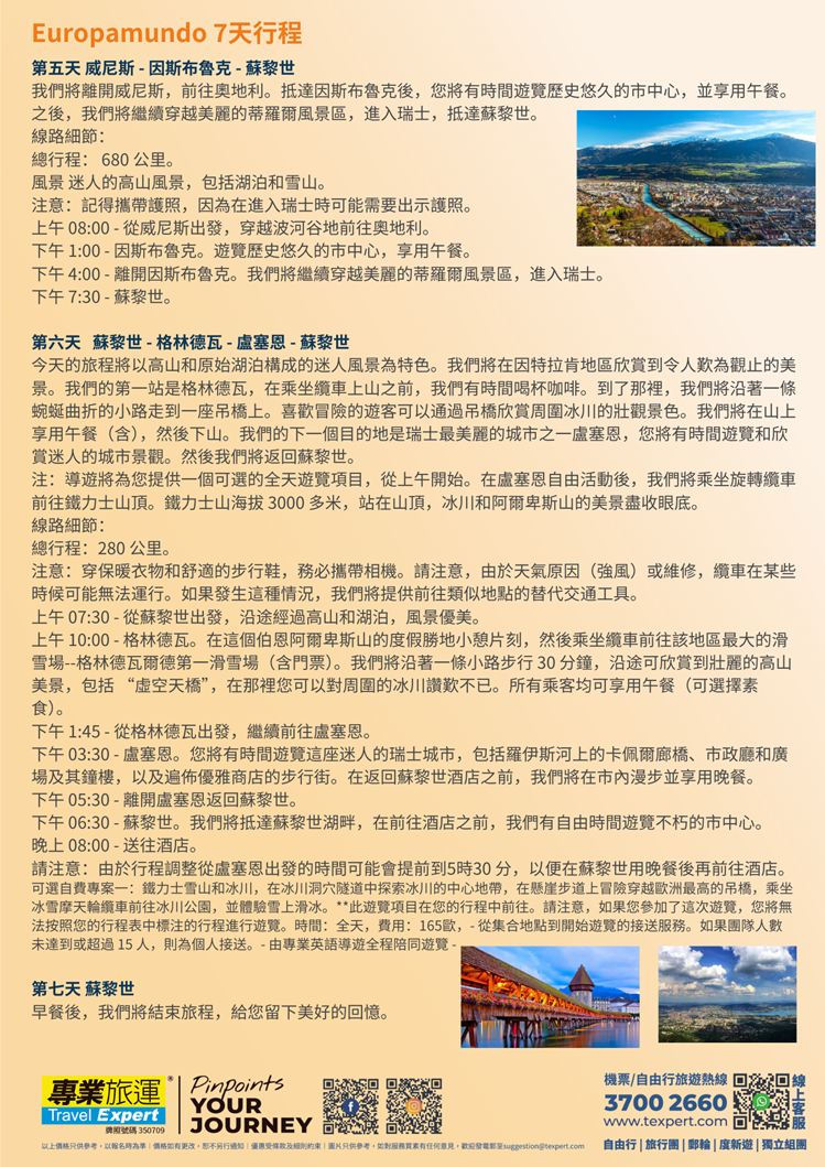 4. 若有機位需求,詳情可向旅遊顧問查詢