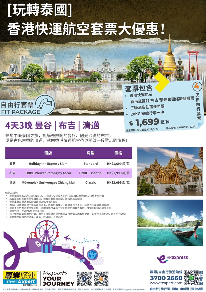 [玩轉泰國] 香港快運航空套票大優惠! | 專業旅運 Travel Expert