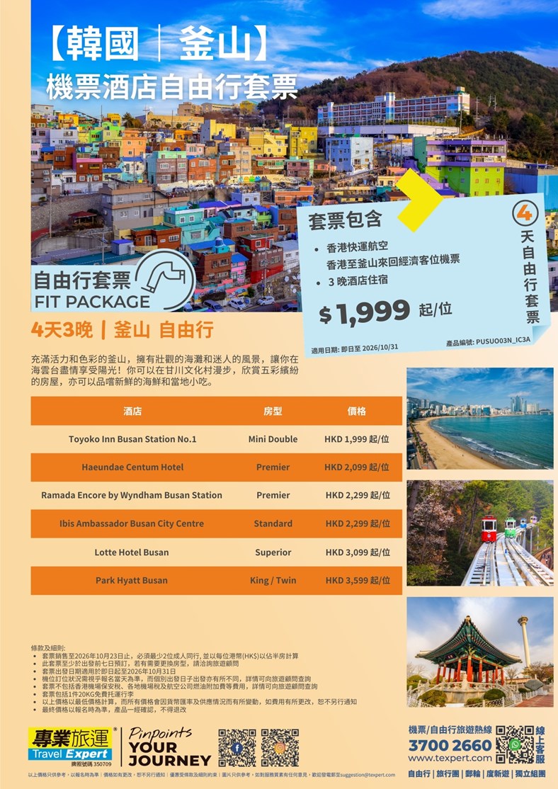 【韓國|釜山】機票酒店自由行套票