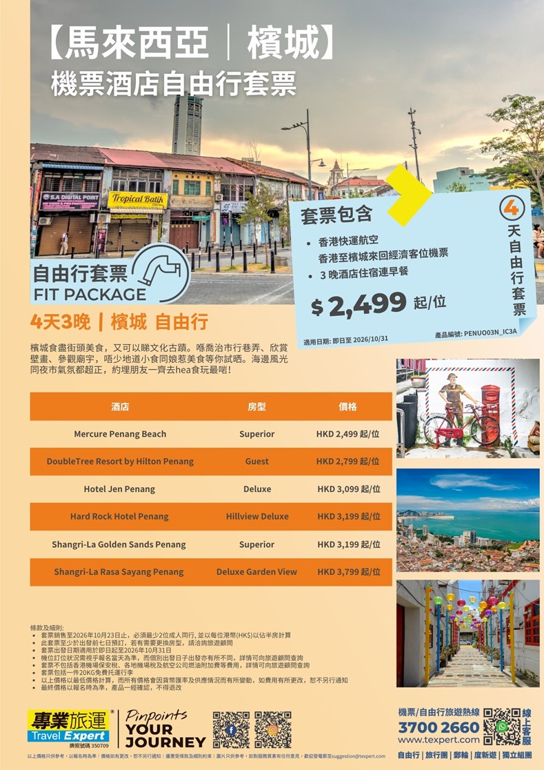 【馬來西亞|檳城】機票酒店自由行套票